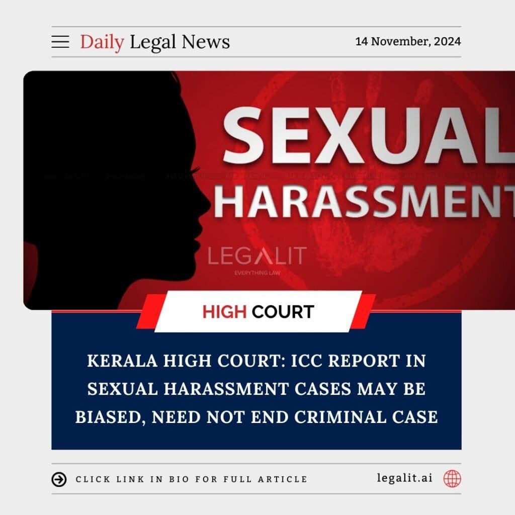 The Kerala High Court recently observed that reports from the Internal Complaints Committee (ICC) in sexual harassment cases could often be biased, and such reports should not automatically lead to the end of a criminal case. The court emphasized that while the ICC’s findings are important, they should not overshadow the criminal investigation, which must be pursued independently and based on the facts and evidence.