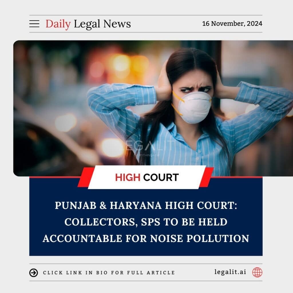 In a landmark ruling, the Punjab and Haryana High Court has directed that District Collectors and Superintendents of Police (SPs) will bear accountability for any instances of noise pollution in their respective jurisdictions.